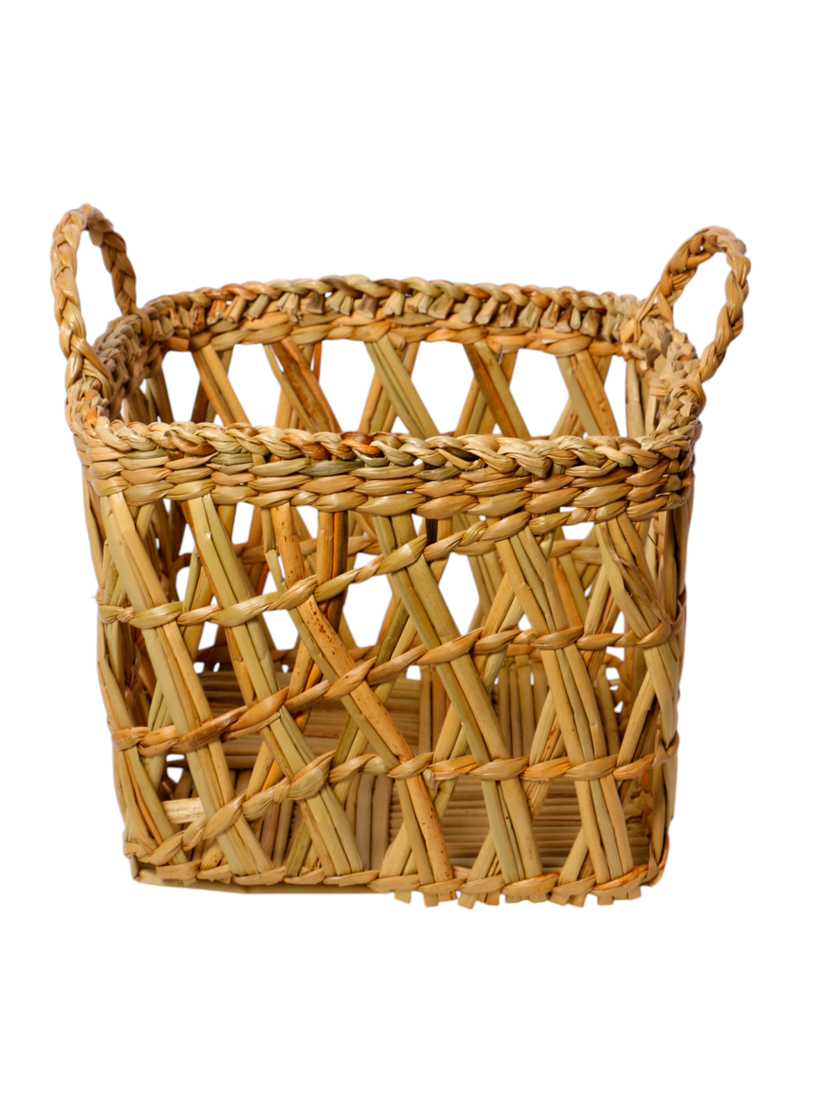 CESTO CUADRADO CALADO Y TEJIDO DE JUNCO