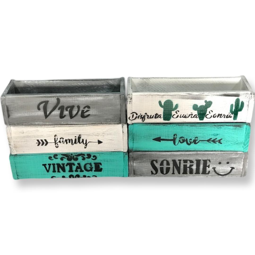 CAJON CHICO DE PINO PATINADOS CON FRASES
