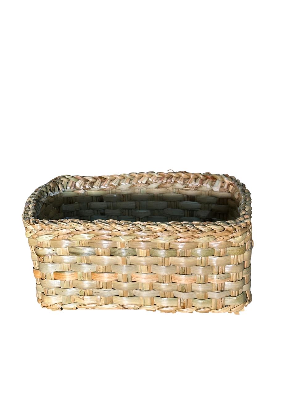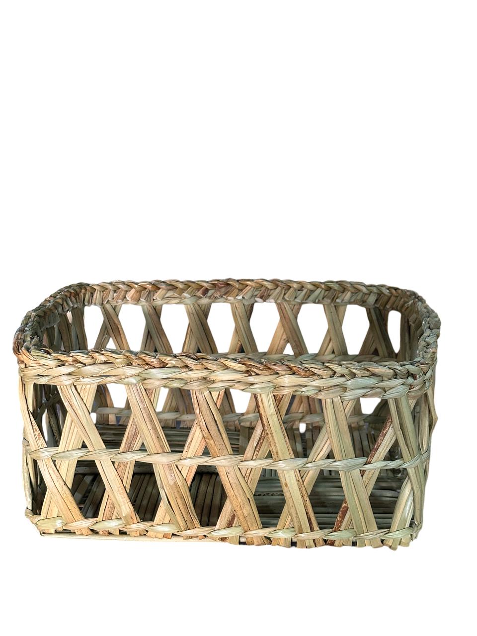 CAJA DE JUNCO BAJA CALADA Y TEJIDA