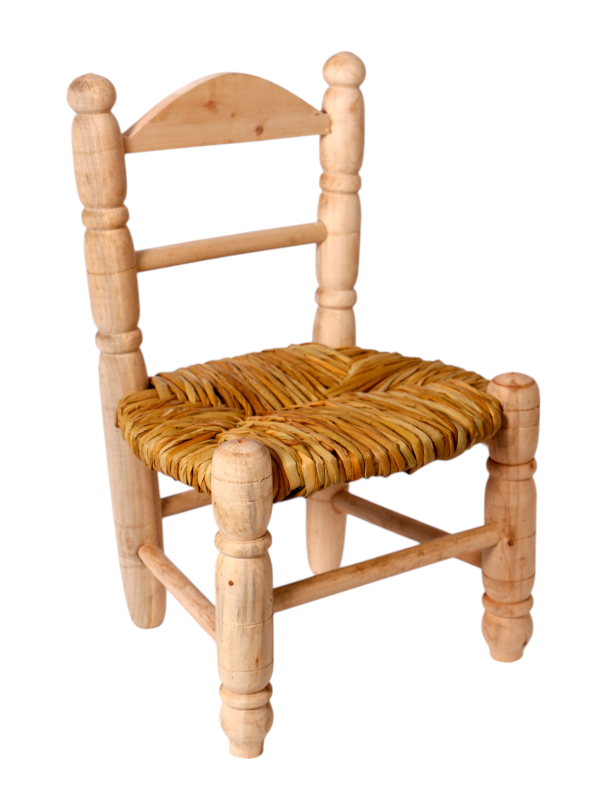 SILLA INFANTIL DE MADERA Y JUNCO PATAS TORNEADAS SIN APOYA BRAZOS