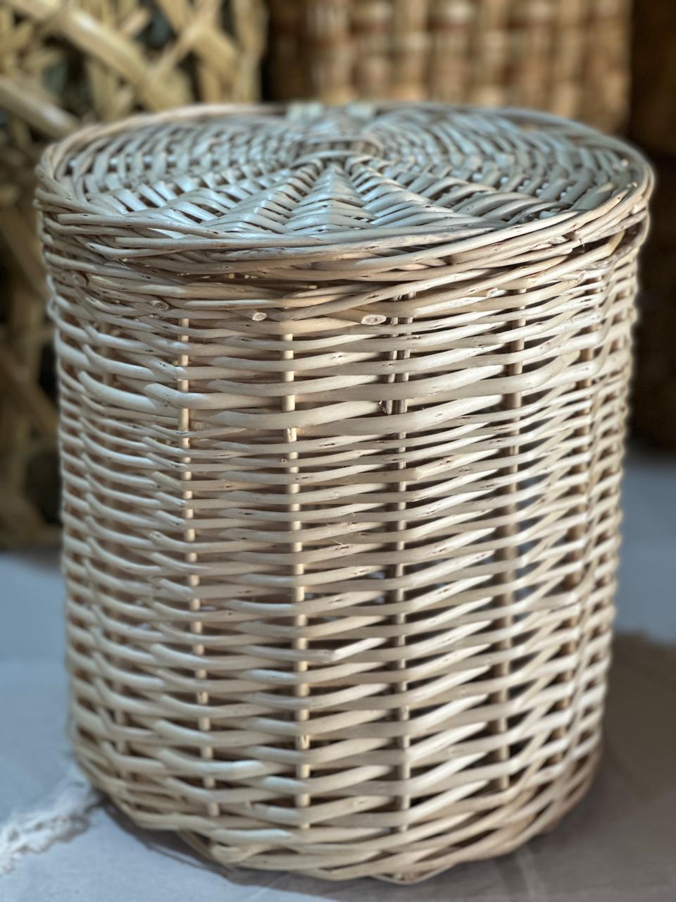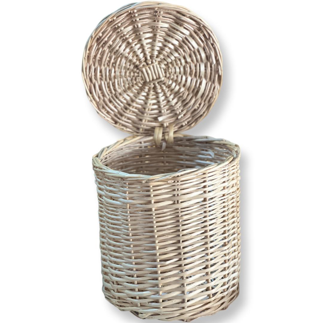 PAPELERO DE MIMBRE BLANCO CON TAPA